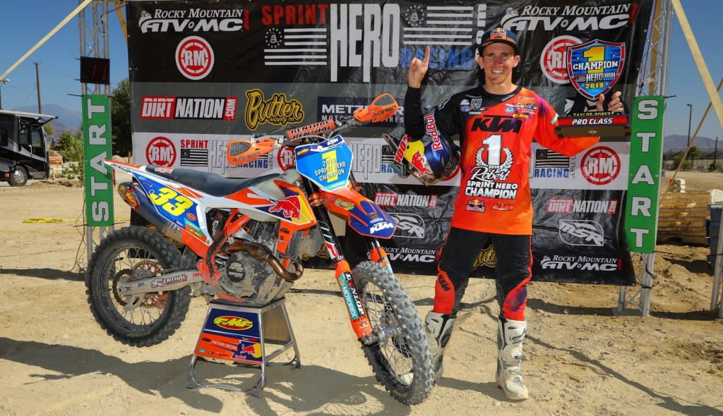 Devore, CA – Zach Bell used his vast motocross racing experience to win the final round of the 2019 Sprint Hero Racing season at Glen Helen Raceway. Running in the Pro Class, Bell scored his first victory of the year, ahead of Taylor Robert, who clinched the championship. Dante Oliveira was third.